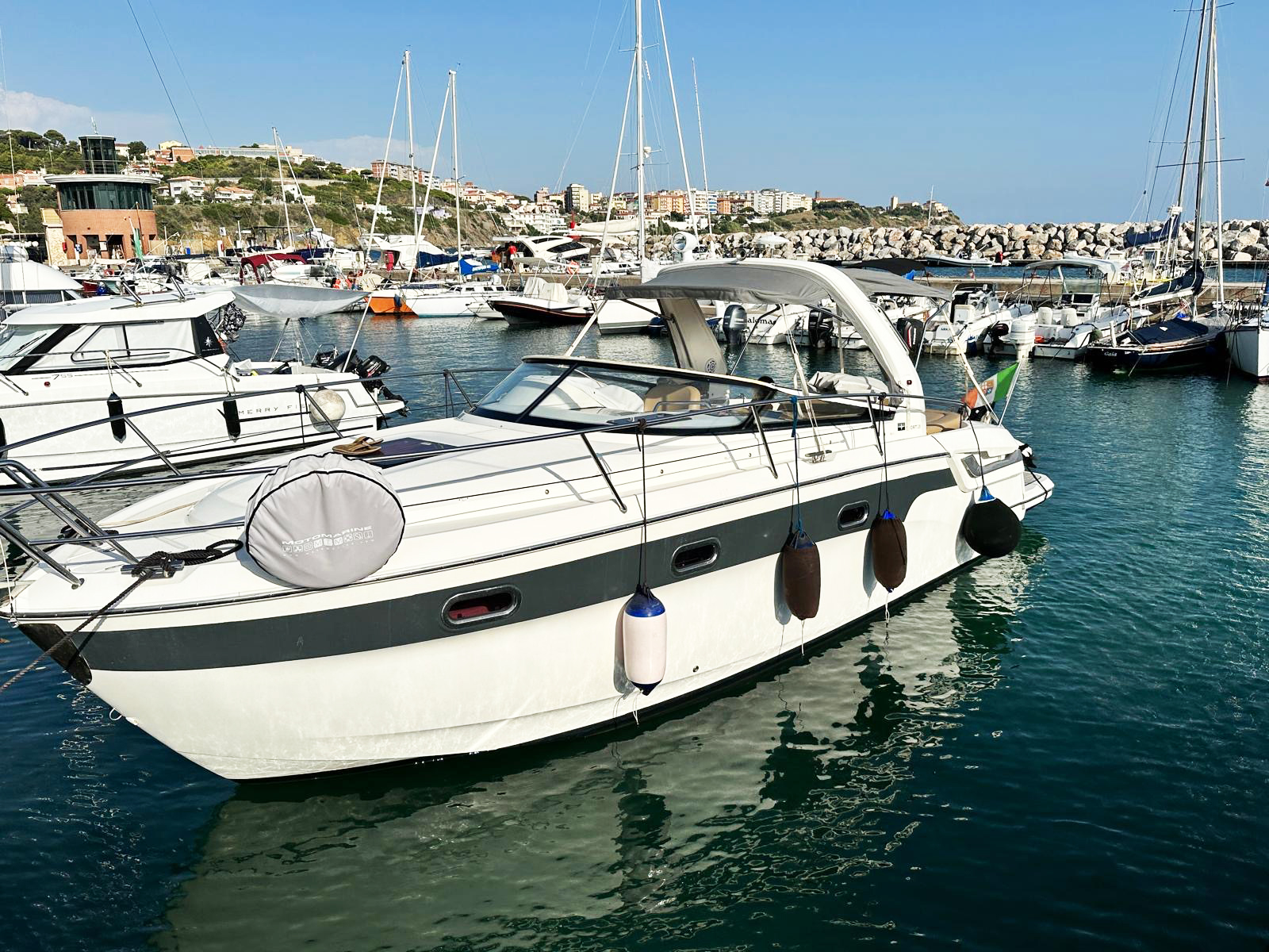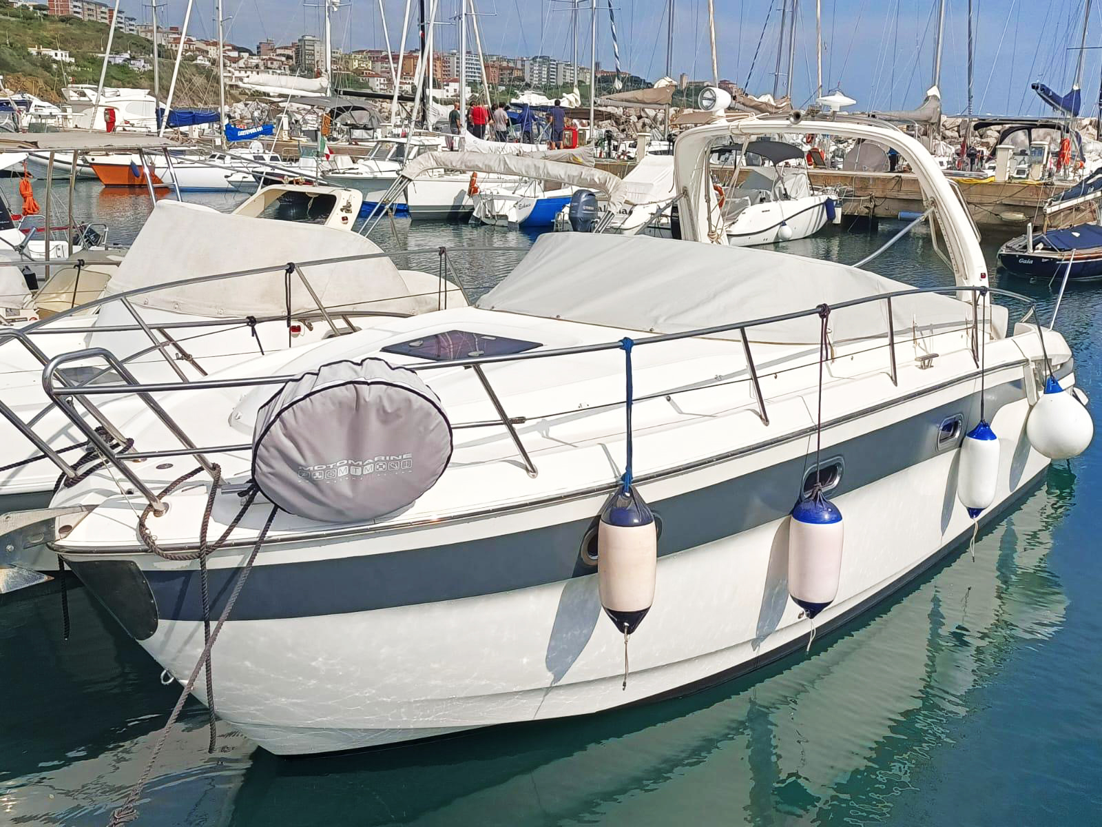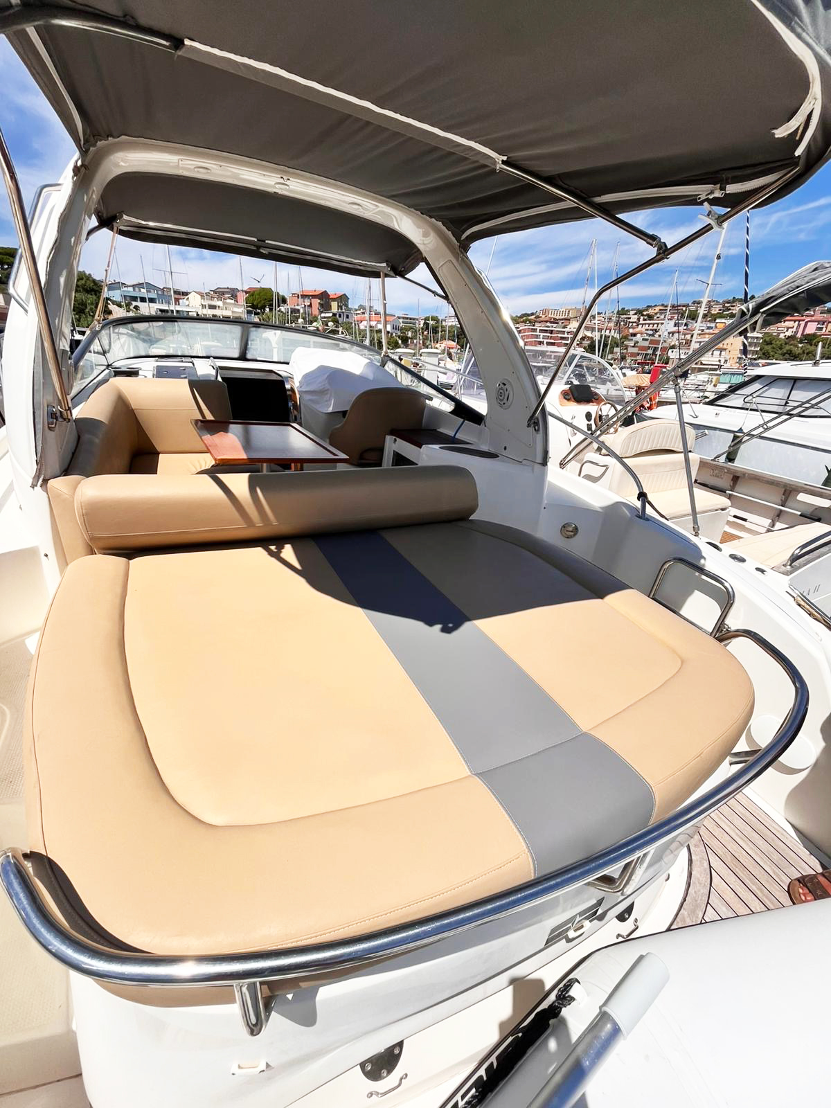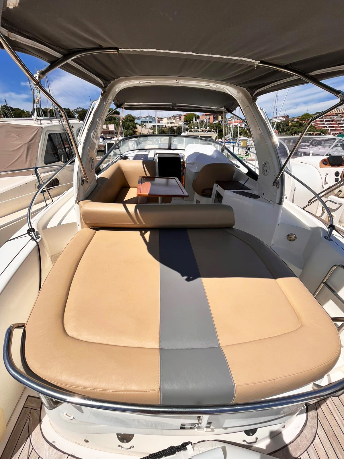 Tendalini :Copertura totale in ottime condizioni con possibilità, a poppa, di poter scegliere tra ombreggiate o chiusura con vetratura.
