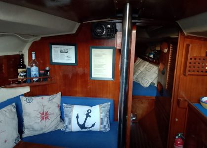 Note :Interni in buonissime condizioni, accoglienti. Cuscineria interna rifatta con tessuto azzurro.