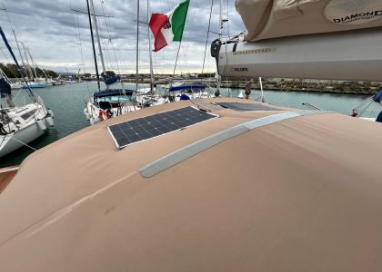 Extra accessori :N.° 2 pannelli solari da 100 W del 2025. Aggiunto prolungamento spiaggetta a poppa con teak, per rendere più confortevole il bagno in mare o la doccia a poppa. Doccia in pozzetto. Cancelletti laterali lungo la battagliola per ormeggio all inglese.